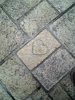 そんで、引いたおみくじを結んでたら、この近くに『ハートの石畳』ってのが、一箇所だけあるって