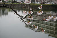 写真は外から見たお城の堀と桜だよ!生憎の曇りだったけど、桜は見ての通り満開!