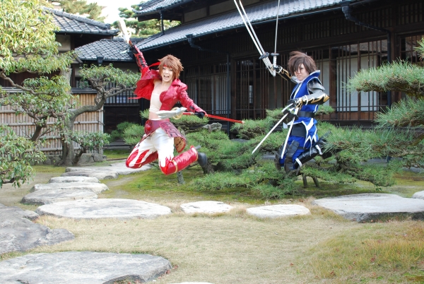 バトルヒーローズのOPの最後の蒼紅が一時停止する場面の再現。