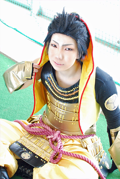 家康の陣羽織は2回作り直して、背中の模様(歯朶の前立て)もフリーハンドで描いて何回も試しプリントして納得のいく色に仕上げて作ったもので。頑張って作ったくせにどうせ背中だしなぁ……って感じだったから、撮って下さったときホント嬉しかった!