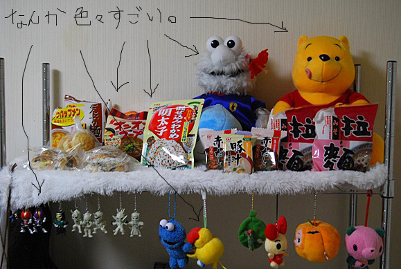 それなのに、敷物のモコモコが良い滑り止めになって、完璧なる食料置き場になってやがるvvv